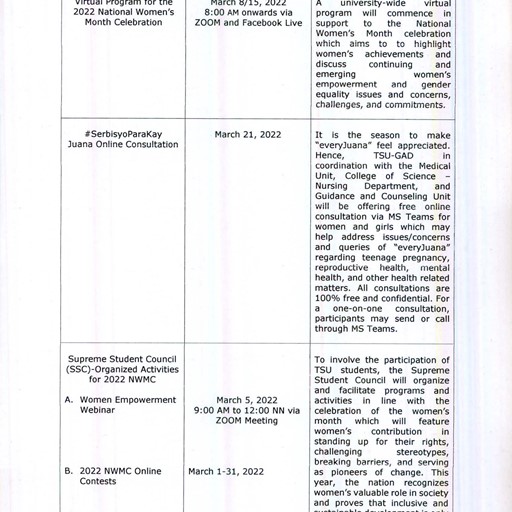 The TSU community is enjoined to pursue the common vision of inspiring and empowering women and girls to be agents of change and contribute to promoting gender equality and the empowerment of all women through the following activities.