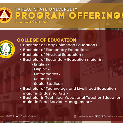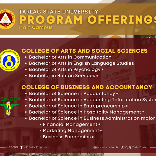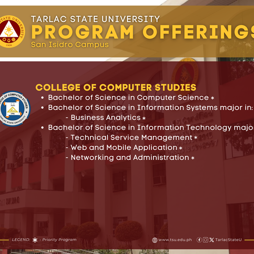 To learn more about the program you wish to apply to, you may also check out this link (https://www.tsu.edu.ph/academics/colleges/)