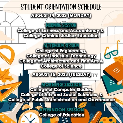 As your College journey starts, we are inviting you to attend the TSU Freshmen Orientation 2023 with the theme “COLLEGE NA ANG BESHY KO”, happening on August 14 & 15, 2023 at TSU Gymnasium.