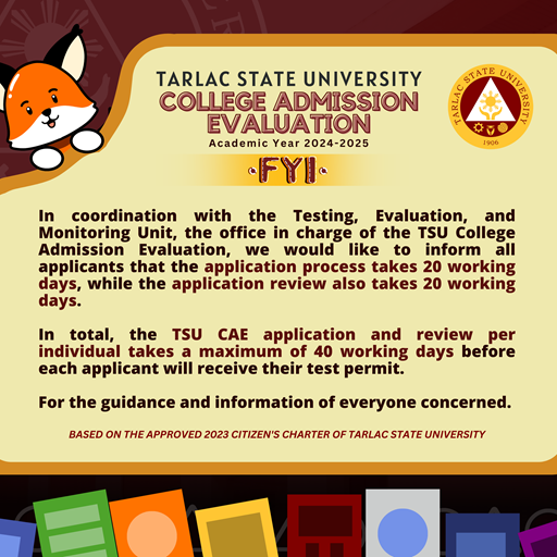This is based on the approved 2023 Citizen's Charter of Tarlac State University (see pp. 359-360