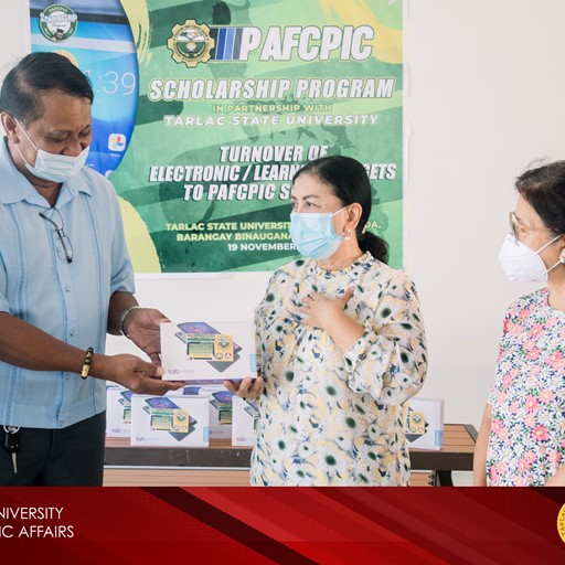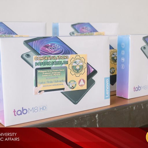 The Philippine Army Finance Center Producers Integrated Cooperative (PAFCPIC) led by Col. Regidor M. Dela Cruz (RET), Chairperson of the PAFCPIC Scholarship Committee, turned over 85 units of Lenovo tab M8 to Tarlac State University for its chosen scholars earlier today (November 19) at the TSU Lucinda Campus.