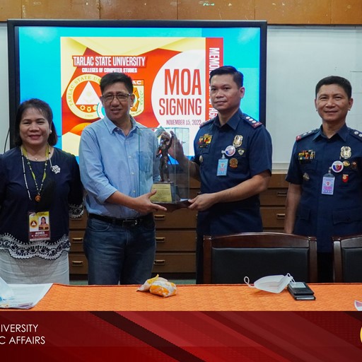 Tarlac State University – College of Computer Studies (CCS) and the Tarlac Police Provincial Office (TPPO) strengthened their partnership through the signing of a Memorandum of Agreement (MOA) at the TSU AVR yesterday morning (November 15, 2022).