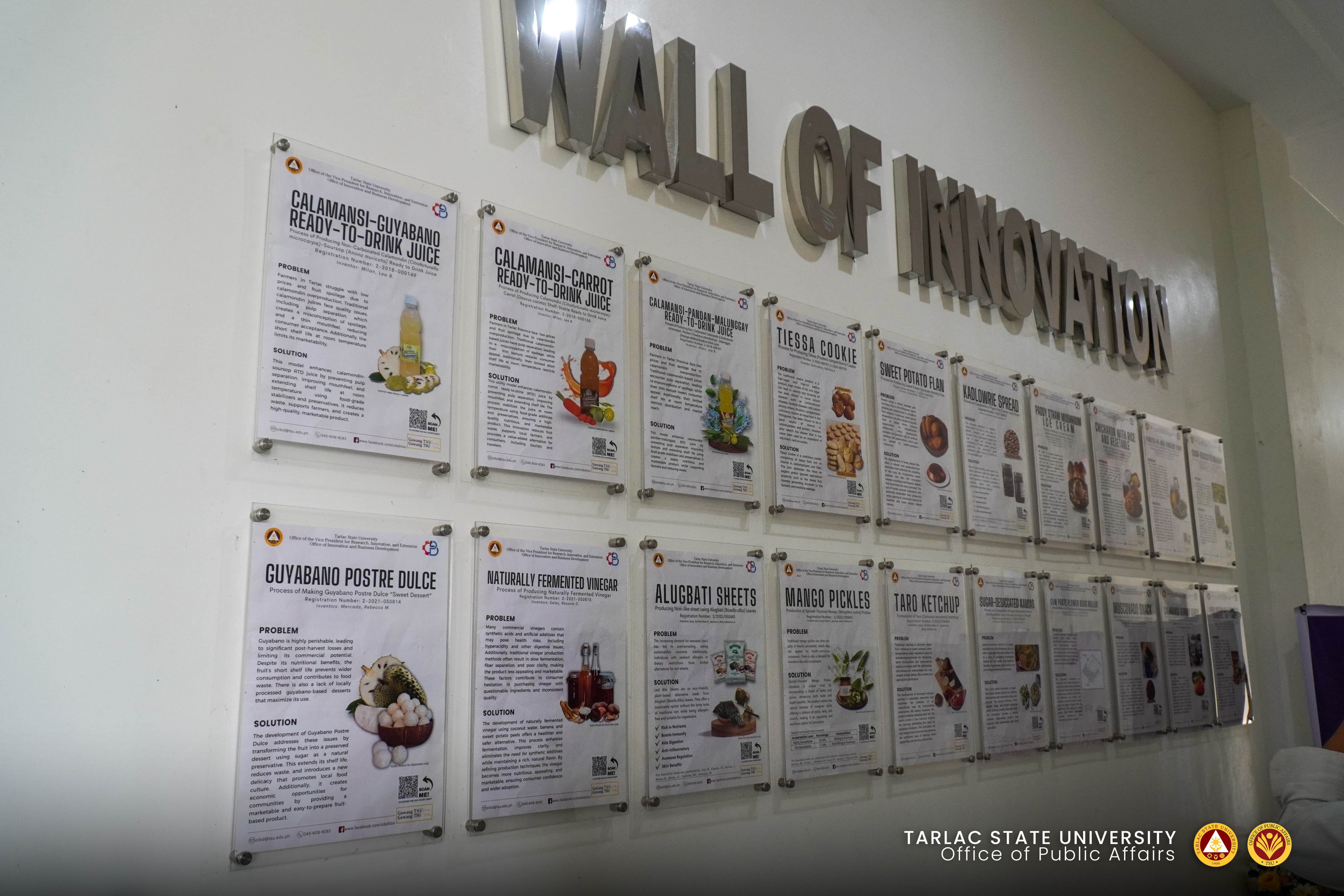 Located on the first floor of the Center for Food Technology and Research, the Wall of Innovation showcases the center's various food utility models developed by the university's researchers and innovators over the years.