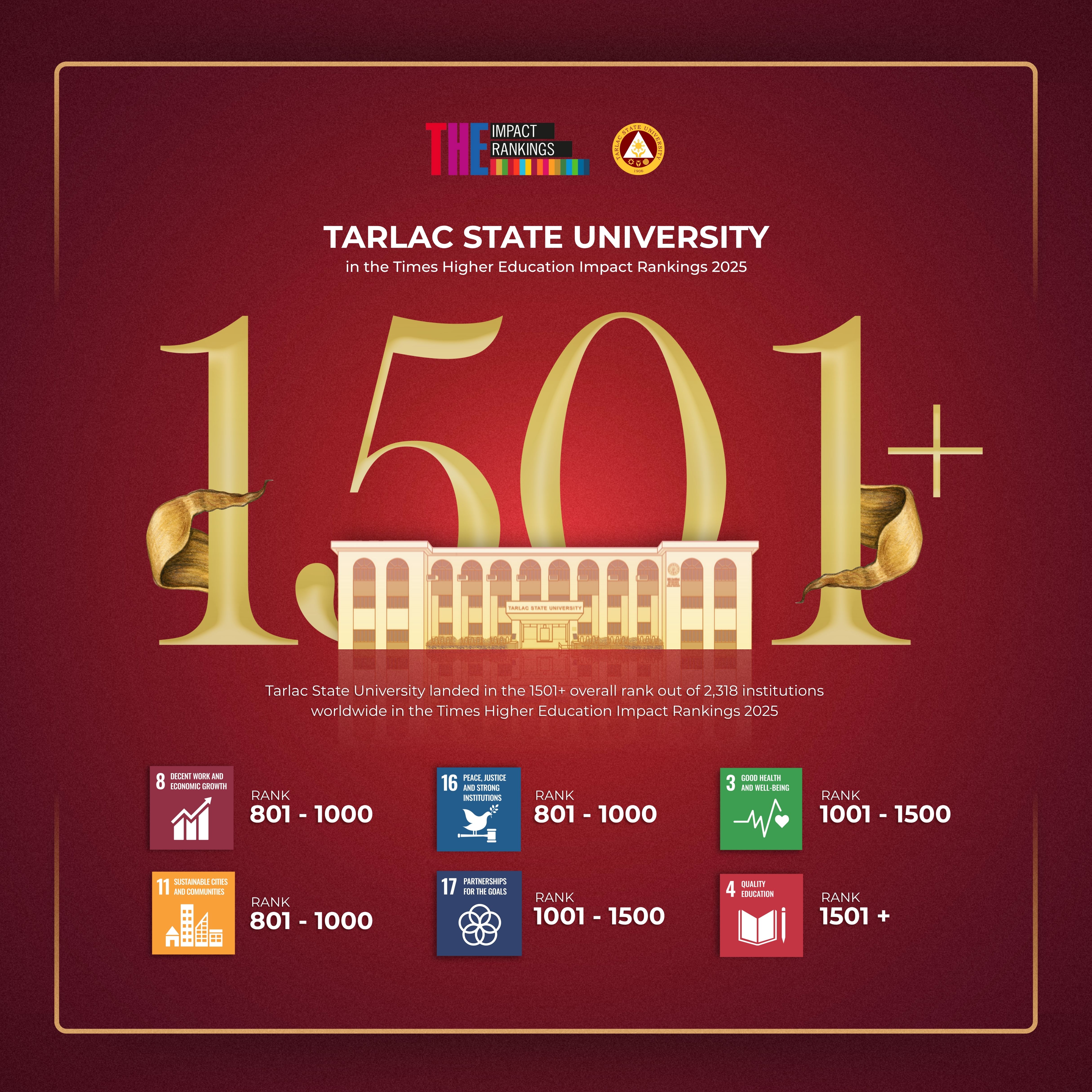 Tarlac State University landed in the 1501+ overall rank out of 2,318 institutions worldwide in the Times Higher Education Impact Rankings 2025, per the results released today (June 18).